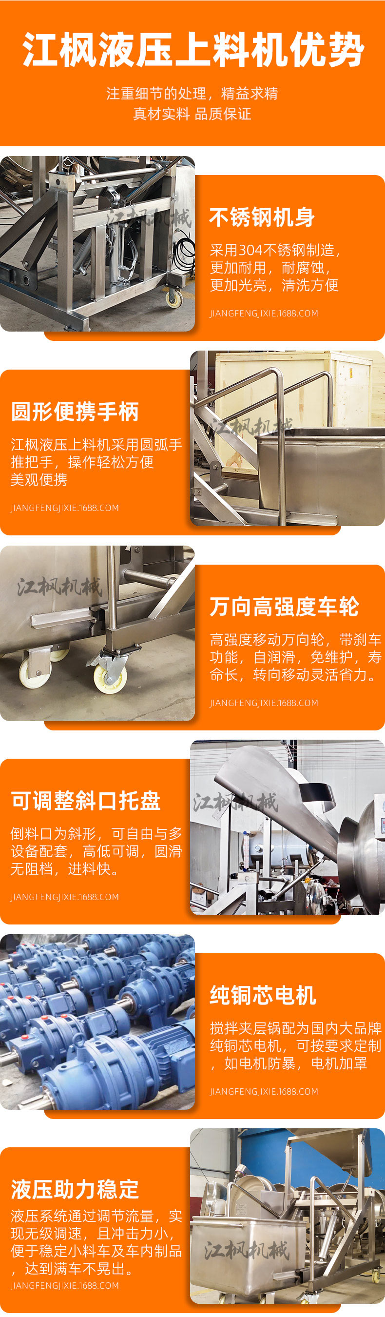 一台自动上料机可以与多个料车配合使用,实现连续上料作业,这一特点使得肉类加工厂和香肠加工厂等场所可以方便地进行物料加工。例如,在肉类加工厂中,料斗车提升机可以用于肉浆的上料;而在香肠加工厂中,料斗车提升机则可以用于香肠馅的上料等环节。